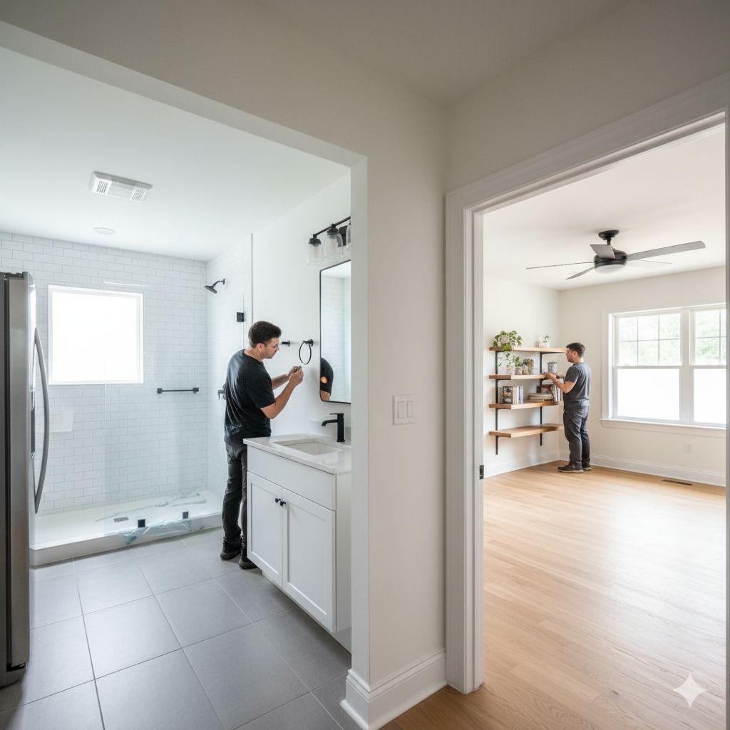 We update walls and trim with professional painting, improve function with appliance installs or replacements, and modernize bathrooms with new fixtures, hardware, and clean finishes.
